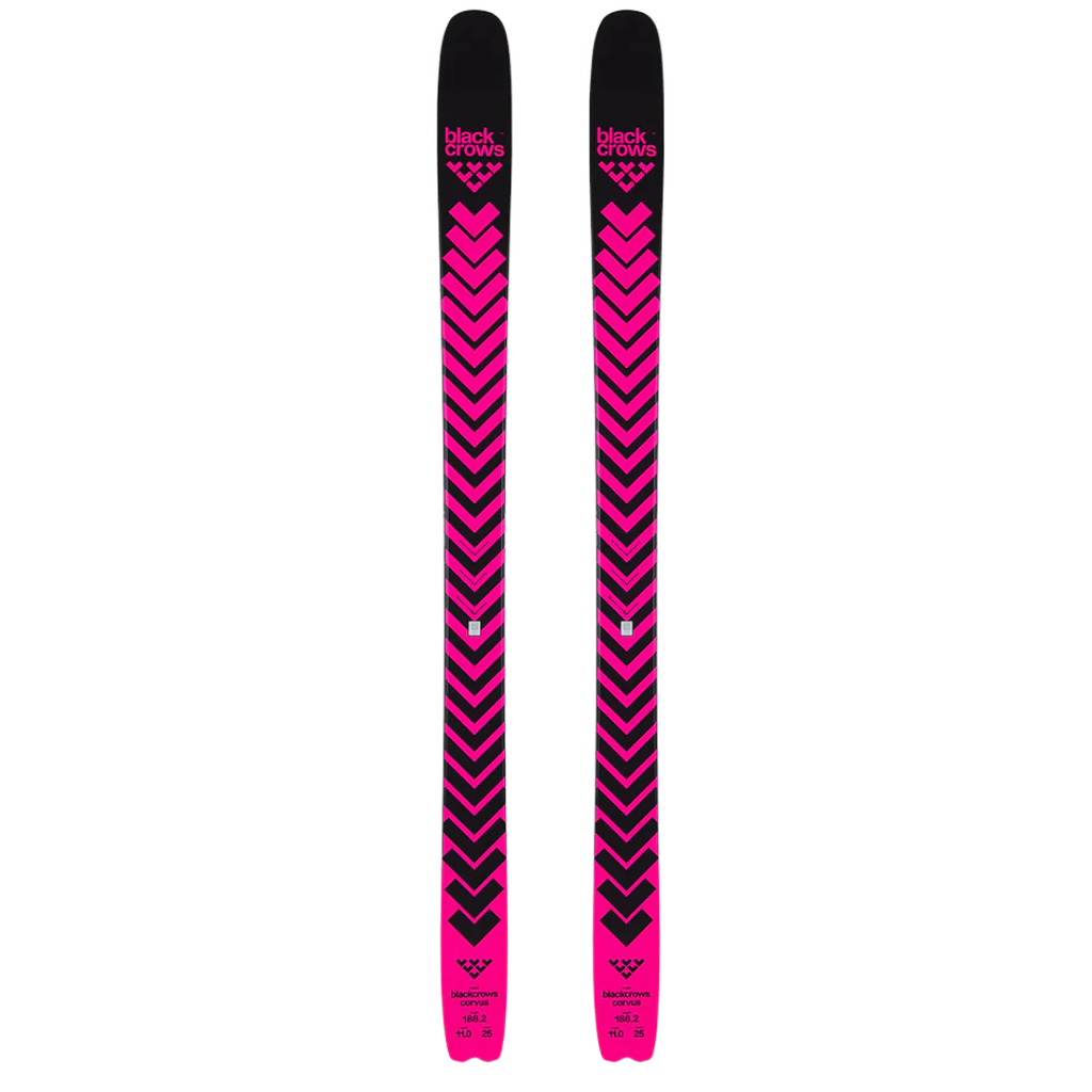The Corvus is the original blackcrows ski, the founder, the black stallion. Born in the winter of 2007-2008, it is the essence of blackcrows skiability: everyday, every kind of snow, every terrain, the pleasure and curve playfulness. Here's the fifth version of the mothership. And it's an all-new shape: classic camber, straight lines, 2 progressive rockers, a dash of titanal, a touch of alpine, and here's the new beast for big mountain skiing, made to enjoy big curves, go fast, and pivot in couloirs. This version marks the return of the black bird to the zenith of free skiing in big terrain.