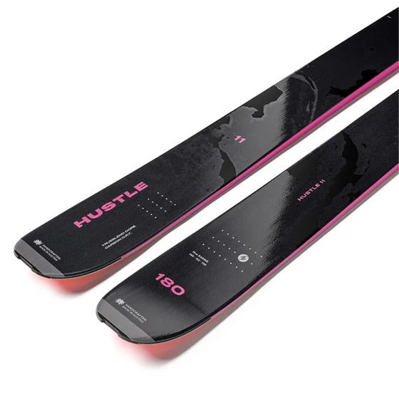 We've been dreaming for years of a lighter Rustler 11 that will do dual duty as a freeride ripper and backcountry slayer. The dream becomes reality this season with the introduction of the Blizzard Hustle 11 Skis. Built in the same molds but with a lighter TrueBlend Free Core and a modified Carbon D.R.T. insert instead of the Titanal one, the Hustle 11 kills it on powdery descents without killing you on the skin up. Mount this puppy up with a hybrid tech binding and light the fuse - the fireworks will be a thing of beauty.