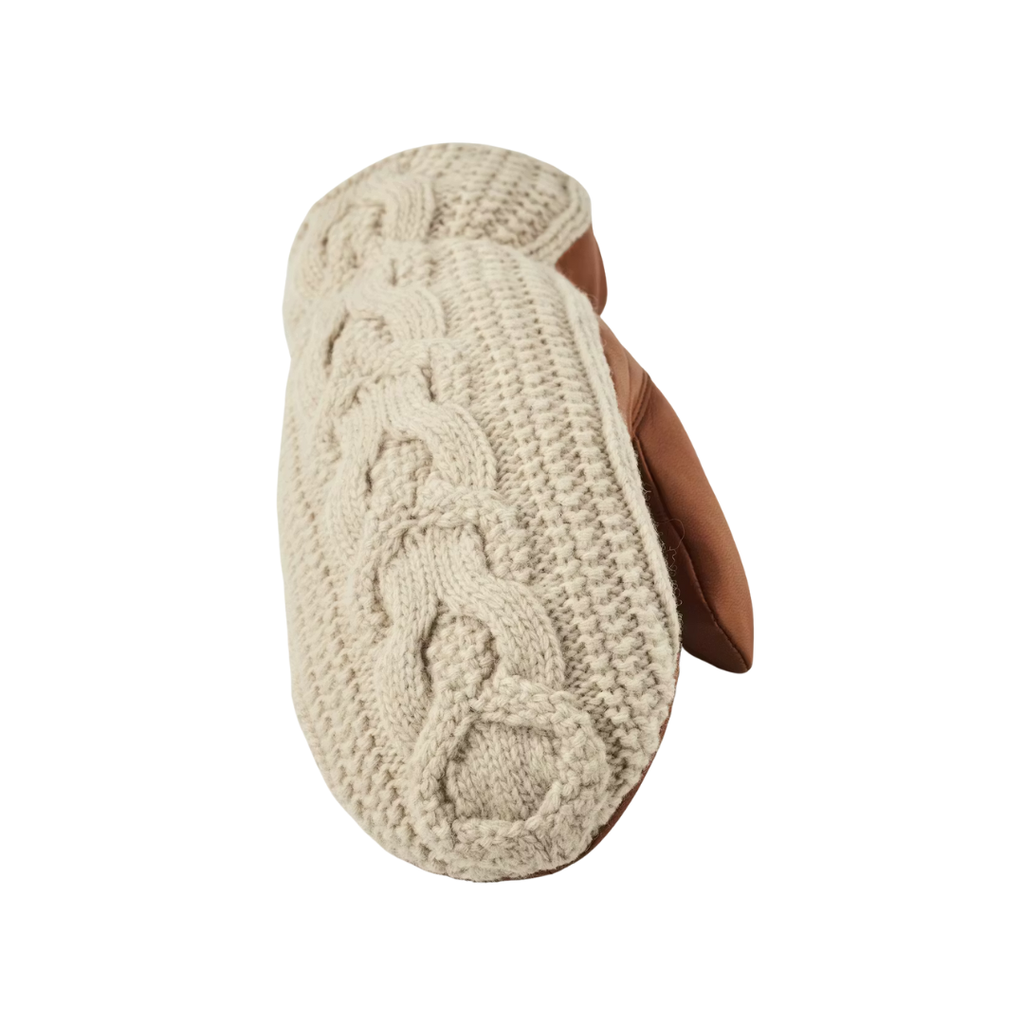 A beautiful, warm women’s mitten combining the soft sheen of leather with decorative knitted cables on the backhand. Made in water-resistant hairsheep leather, this mitten is insulated with Primaloft Gold synthetic insulation for comfortable warmth on chilly winter days. A brushed polyester lining makes for a cosy feel around the hand. Perfect for everyday use and travelling in cold weather, and just as comfortable on relaxing weekend walks.