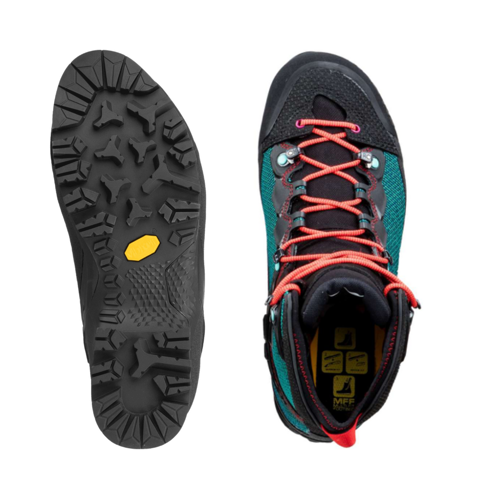 Designed to make light work of tough alpine terrain in variable conditions. Our Raven 3 GORE-TEX® women’s mountaineering boot has an abrasion-resistant fabric upper to offer exceptional stability, durability and performance, all in a lightweight construction. Inside, the durably waterproof and breathable GORE-TEX® Performance Comfort lining delivers optimized climate comfort even in changing weather conditions. Outside, the protective rubber rand and external TPU toe cap increase comfort and protection in the long run, outperforming conventional constructions. The Vibram® WrapThread Combi (WTC) sole offers optimal grip, traction and surefootedness over rough, steep terrain without compromising on comfort, while the smooth climbing zone at the toe promotes precise footwork. At the heart of the boot, the stiff nylon carbon loaded fibreglass insole ensures good crampon compatibility, while the Bilight Midsole is designed with material properties and an ergonomic shape to provide superior shock absorption for the lifetime of the shoe. Flexibility, heel support and a precise blister-free fit come courtesy of the SALEWA 3F System, 3D Lacing allows you to fine-tune at the toes and midfoot, and the Multi Fit Footbed + (MFF+) with interchangeable layers gives you greater customisation for your feet.